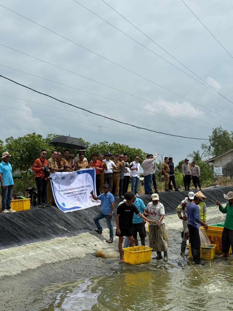 SAMUDERA NEWS- Kebangkitan tambak eks Dipasena kian menunjukkan hasil konkret. PT Sakti Biru Indonesia (SBI) bersama Kementerian PPN/Bappenas dan Bank Rakyat Indonesia (BRI) menggelar panen udang Program Kemitraan Nasional di Desa Bumi Dipasena Makmur, Kecamatan Rawa Jitu Timur, Kabupaten Tulang Bawang, Selasa (10/2/2026). Panen udang ini menjadi simbol keberhasilan revitalisasi Dipasena yang kini kembali bergerak sebagai sentra budidaya udang nasional.